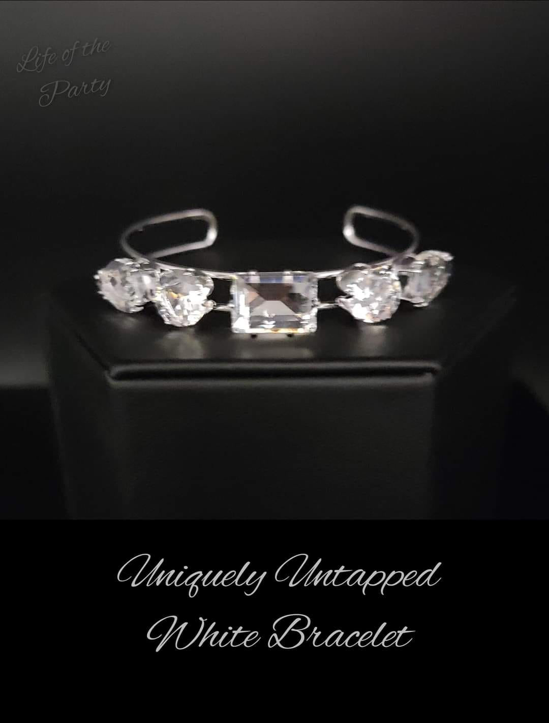 Set in elevated, silver-pronged settings, an oversized collection of white gems adorns the top of an airy silver cuff. Featuring various shapes, the oversized collection showcases endless light-catching texture across its faceted surface, creating blinding bling atop the wrist.